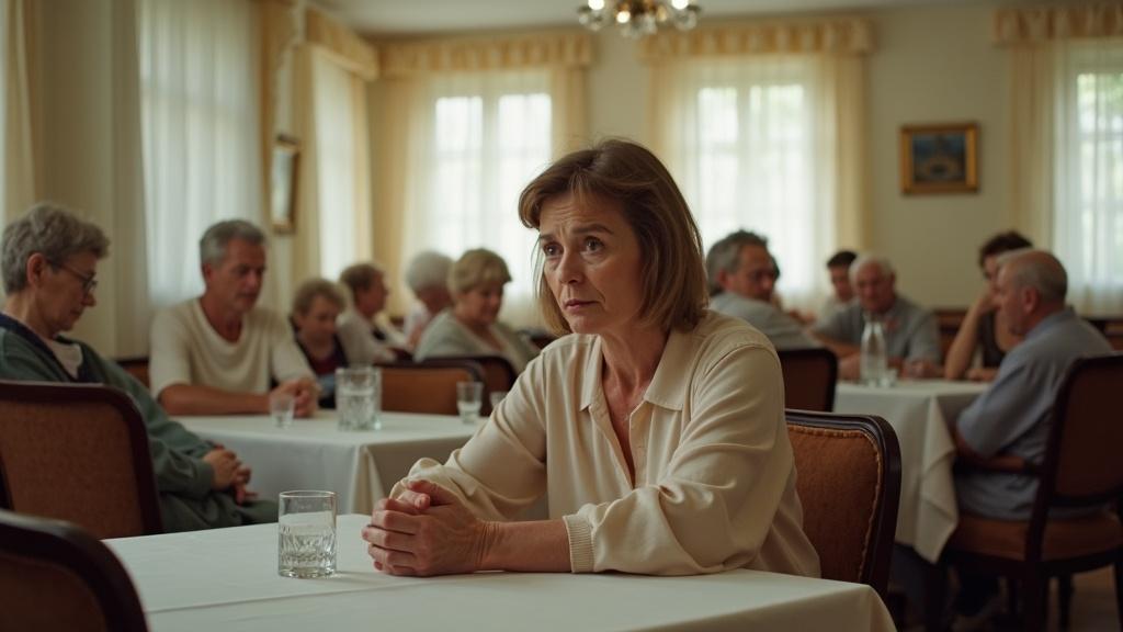 И вот уже Алла в санаторной столовой рассматривает отдыхающих. Грустное зрелище-в основном пожилые пары, мамочки с детьми и одинокие женщины пенсионерки.