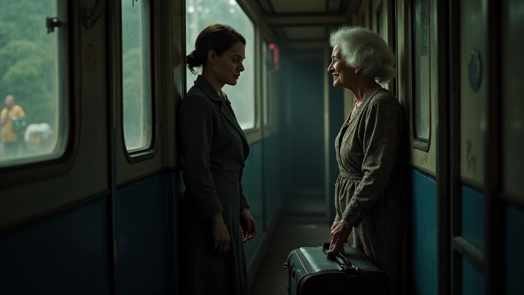 Тётя Нюра улыбается девушки — проводницы запрыгивают в вагон и машут ей рукой.