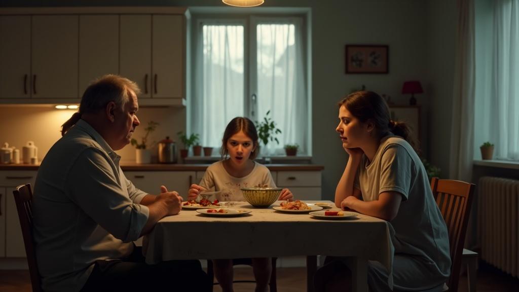 Осенний вечер в квартире Акуловых. За столом на кухне ужинает семья. Валерий недавно вернулся с работы, а его жена Алла, что работает в парикмахерской посменно сегодня выходная. Пятнадцатилетняя дочь Таня ковыряет, выкладывая на края тарелки лук из супа.