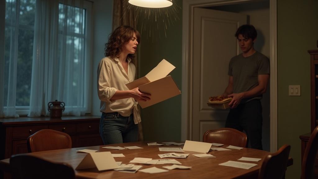 Дмитрий замер в дверном проёме гостиной. В руках у него была коробка с пиццей, которую он только что привёз на ужин. Запах свежей выпечки и расплавленного сыра неуместно витал в напряжённом воздухе их квартиры. За окном уже стемнело, фонари освещали мокрый после дождя асфальт, а в их доме разворачивалась настоящая драма.
