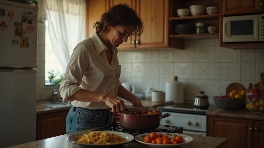 На кухне пахло жареным луком и острыми специями — Виктория готовила овощное рагу на обед. Они сидели за столом: Андрей листал новости в телефоне, Лиза рассказывала о новом скандале в издательстве. Виктория смотрела на них с теплом и лёгкой тревогой: сейчас ей предстояло сказать нечто важное.