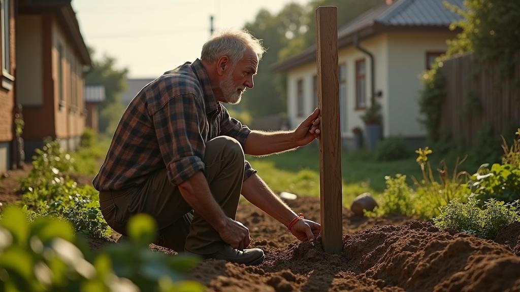 Николай Николаевич глянул на оставленные с утра на грядках следы сорок второго размера и молча принялся утрамбовывать столб щебнем.