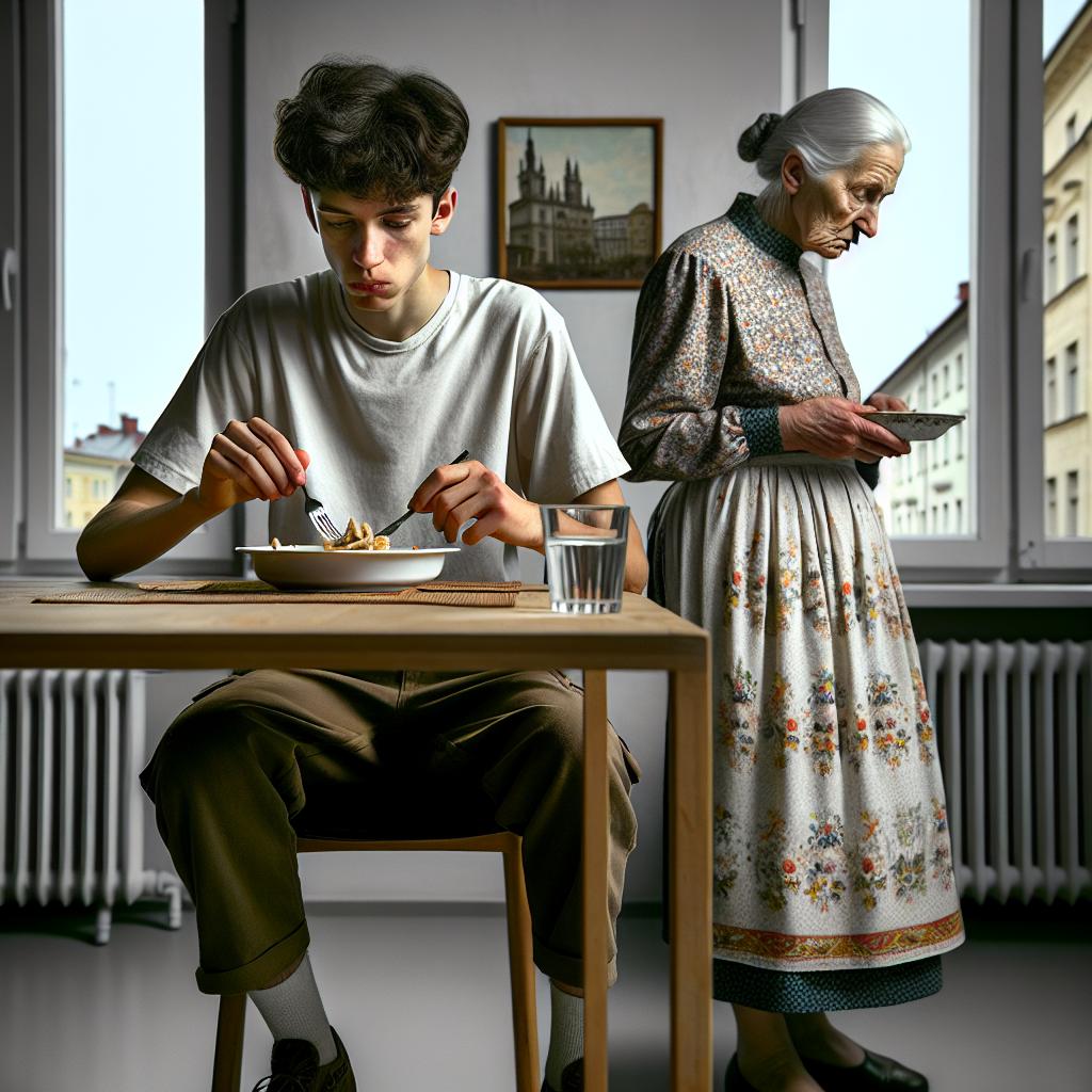 — Ты уже придумал, как будешь подписываться? — строго спросила за обедом женщина у лениво жующего Ромки.