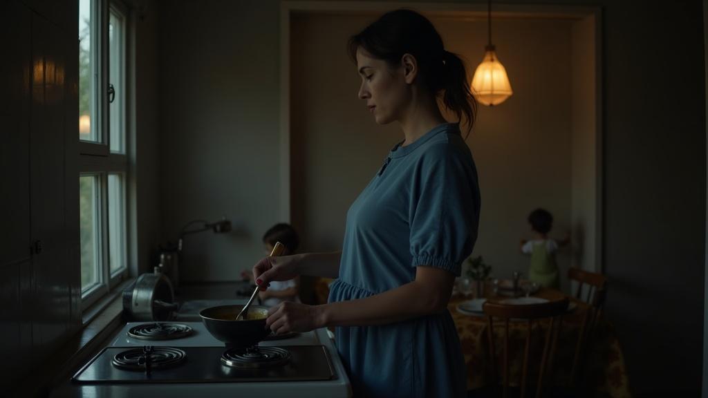 Вероника стояла у плиты, помешивая суп. В соседней комнате играла Мирослава — скакала по ковру, что-то напевала себе под нос. В кухонном окне скапливался вечер: лениво гаснущее солнце и уличный фонарь, мигающий, как старый сигнал тревоги.
