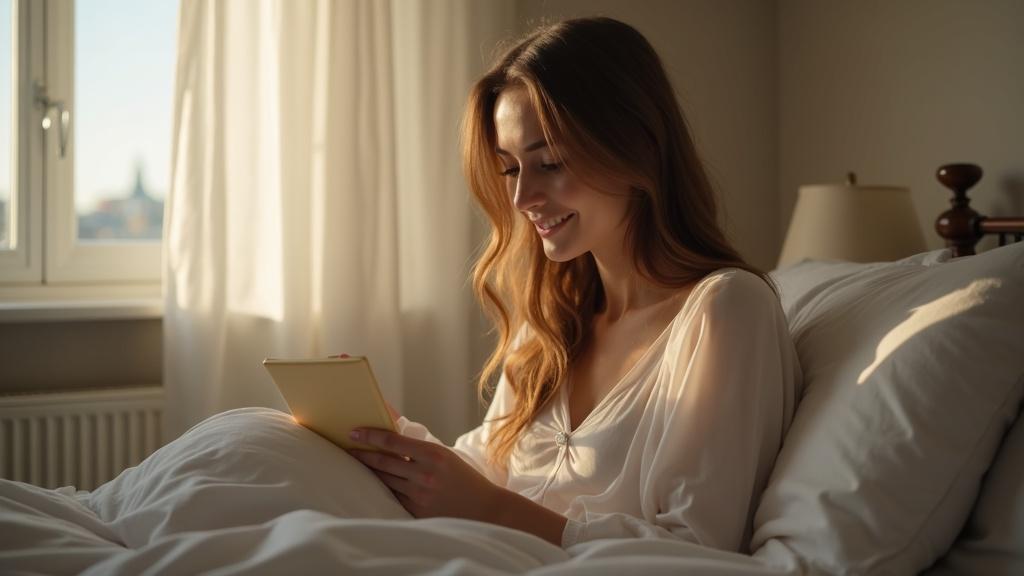 Она будто сошла с картинки журнала, шагнула оттуда, из манящего мира Девушка только проснулась, она лежала на боку в кровати и улыбаясь читала записку, что оставил ей Стас на подушке.