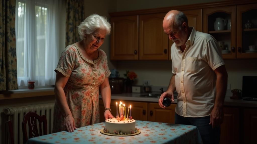 Свечи на торте дрожали от сквозняка, пробивающегося сквозь старые оконные рамы. Светлана разглаживала скатерть — ту самую, голубенькую в мелкий цветочек, что покупала ещё в первый год замужества. Тогда казалось, что вся жизнь впереди, а этот дом наполнится детским смехом и семейными праздниками.