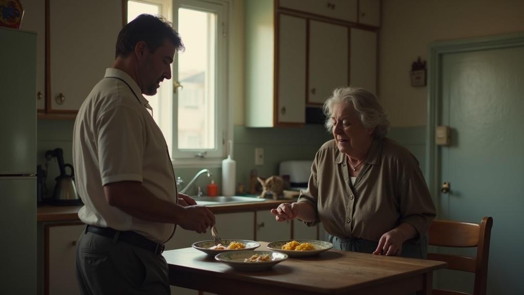 Ольга поставила тарелку с яичницей перед Виктором и села напротив. Он даже не поднял глаз от газеты. Вилка звякнула о фарфор — единственный звук в кухне, где когда-то смеялись и планировали будущее.