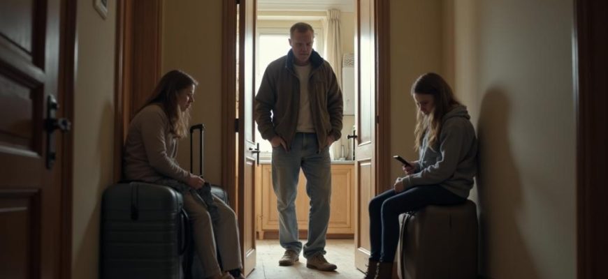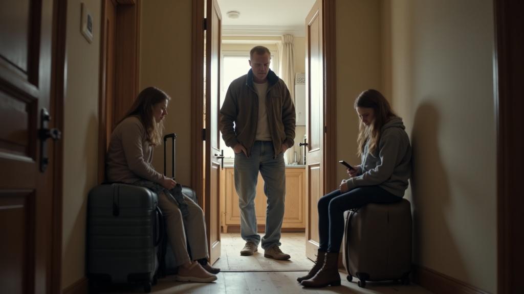 У порога стояли три чемодана, на одном из них сидела угрюмая дочь, смотрящая на отца исподлобья, а из гостиной доносилась какая-то возня.