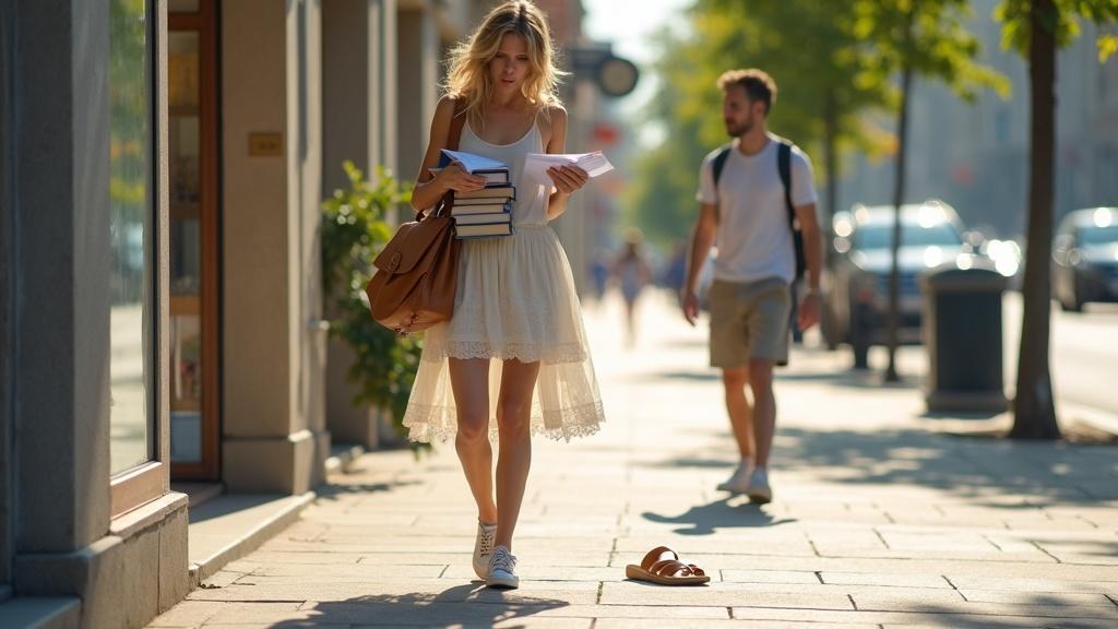 Юля вздохнула и сделала шаг в сторону, всё ещё глядя на понравившиеся босоножки, и налетела на идущего навстречу парня. Учебники и тетрадки, которые она прижимала к груди, вылетели из руки и рассыпались по тротуару.