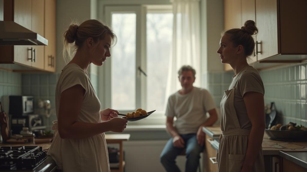 Через месяц квартира перестала быть «их». В прихожей появились туфли Валентины Петровны, в ванной — полотенце Кати, на кухне — кастрюля, которую свекровь привезла «чтоб борщ варить нормально». Людмила пыталась улыбаться, но улыбка всё чаще соскальзывала.
