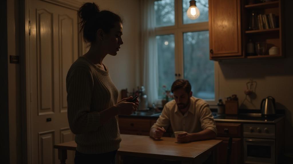 Лена стояла у двери, сжимая телефон в руке так, что побелели пальцы. Из динамика тихо гудел чайник, над раковиной мигала лампочка — раздражающе, с равным ритмом, как метроном в злости.