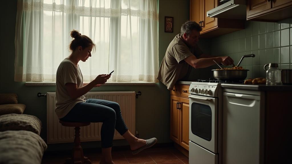— Жень, ну чё ты сидишь как чужая? — Андрей развернулся к ней с сковородкой, картошка зашипела, чуть не вывалилась на плиту. — Я тут стараюсь, ужин делаю!