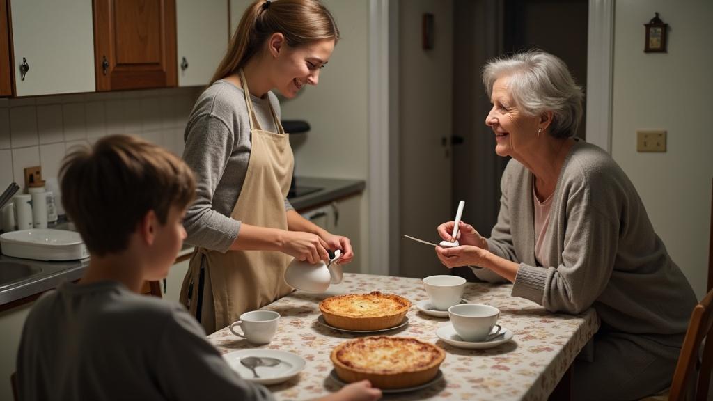 Алина аккуратно разливала чай по кружкам, стараясь не пролить ни капли. На кухне пахло корицей и свежей выпечкой — она с утра испекла яблочный пирог, любимый её пасынком Серёжей.