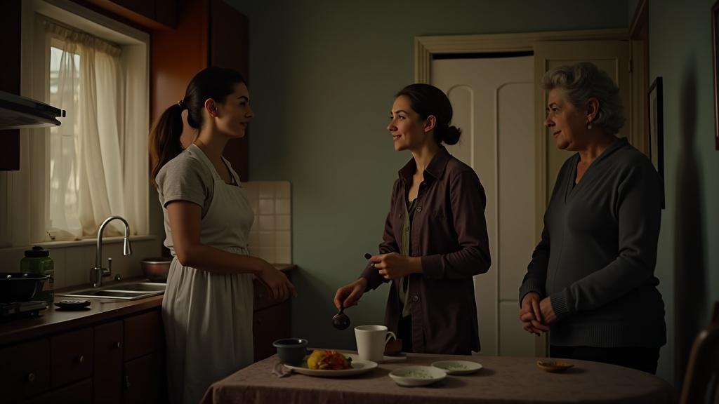Сергей уселся, размахивая руками, и начал с жаром описывать, как его чуть не уволили за опоздание. Анна поставила перед ним тарелку супа, но он даже не поблагодарил — ложка уже звенела по керамике, брызги летели на скатерть.
