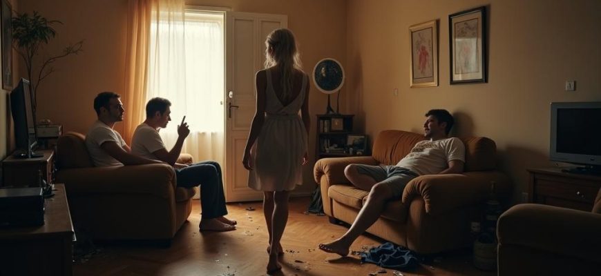 Ольга шагнула вперед, и картина окончательно сложилась: ее диван был завален людьми, на столе — бутылки, закуска, пепельницы с окурками. В центре — ее сестра Катя, с сигаретой в одной руке и бокалом в другой.
