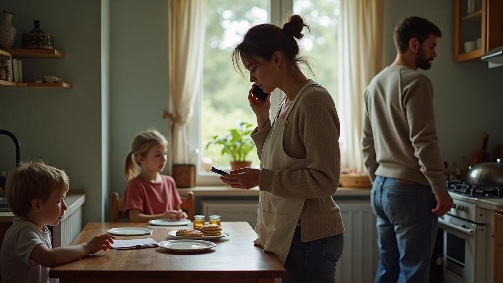 Алёна вздрогнула, крепче сжав телефон. Звонок матери прервал утреннюю суету — она как раз переворачивала блины на сковородке, пока Кирилл и Соня о чём-то увлеченно спорили за столом.