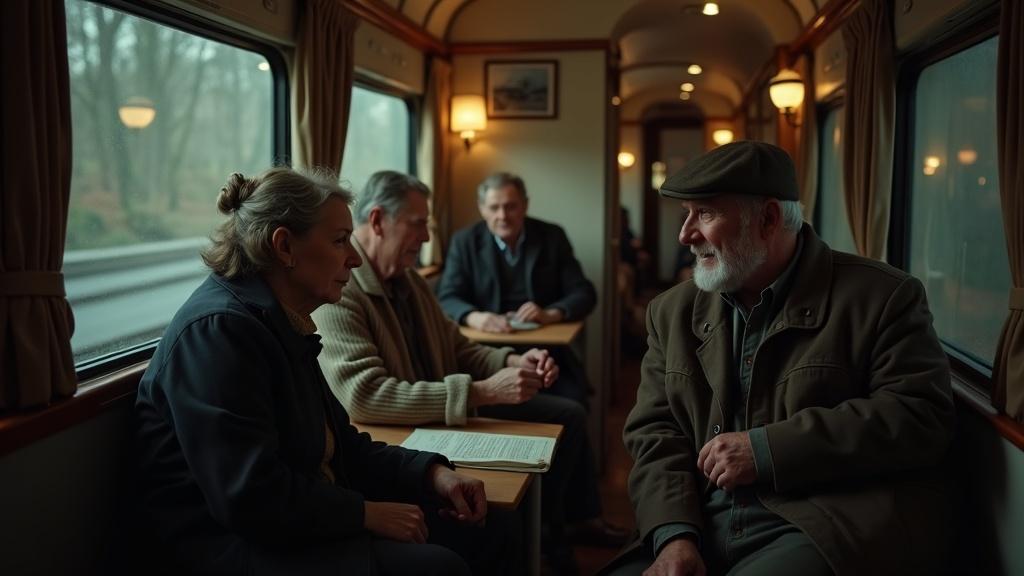 Они познакомились, а затем вышли из купе, дав старикам разложить постели.