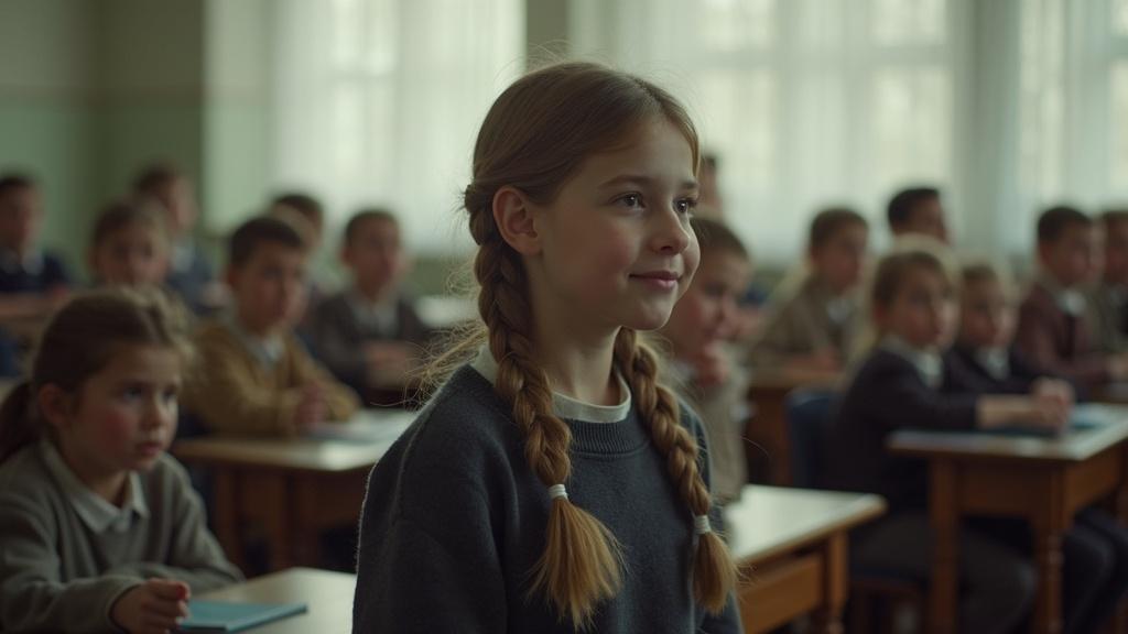 Над Катей в классе ребята смеялись. Уж очень была смешной эта девчонка: ходила на учёбу с косой, перехваченной внизу обычной резинкой, в то время как другие шестиклассницы уже делали модные стрижки, зимой приходила в школу в обычных серых валенках, переобуваясь в раздевалке в сменные серые туфельки.