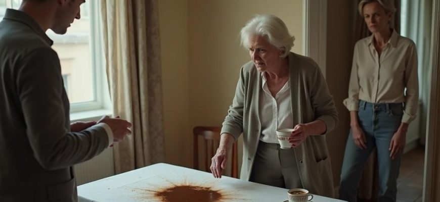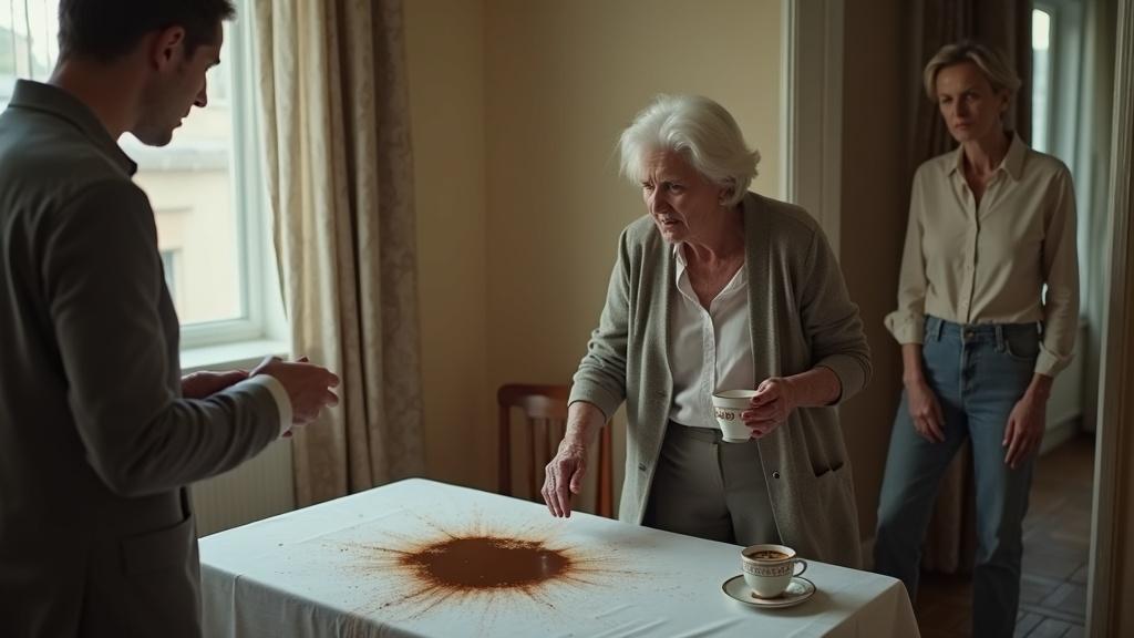 Татьяна замерла с чашкой кофе в руках. Кофе пролился на белую скатерть, расползаясь тёмным пятном, но она этого не заметила. В дверях стояла Галина Петровна, её свекровь, держа в руках какие-то бумаги. За её спиной маячил Вадим — муж Татьяны. Он смотрел в пол, избегая встречи с глазами жены.