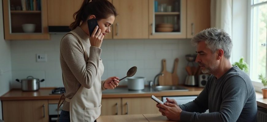 Надежда замерла с телефоном у уха. Кровь прилила к щекам. Она стояла на кухне своей квартиры, в руке держала половник, готовясь разлить суп по тарелкам. За столом сидел Пётр, уткнувшийся в телефон. Он даже не поднял головы.