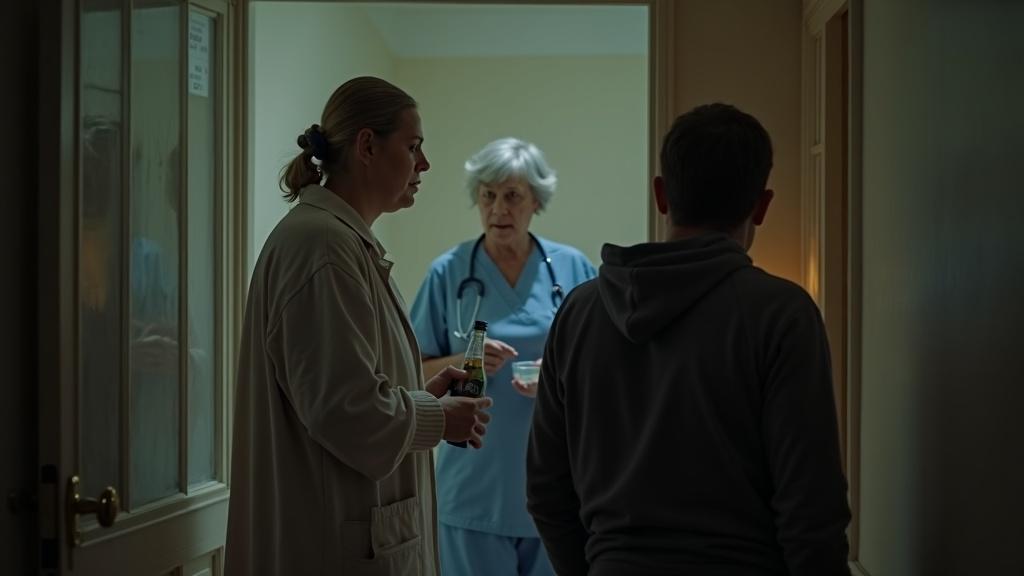 Ключи от квартиры упали на пол с таким грохотом, что Алина вздрогнула. Руки дрожали от усталости после двенадцатичасовой смены в травматологии. Она наклонилась за связкой, и тут входная дверь распахнулась изнутри.