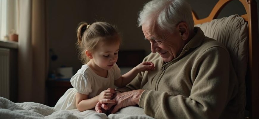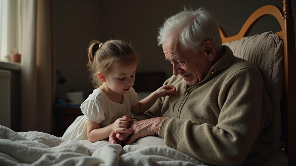 Пятилетняя Анечка сидела у кровати дедушки и осторожно гладила его морщинистую руку.