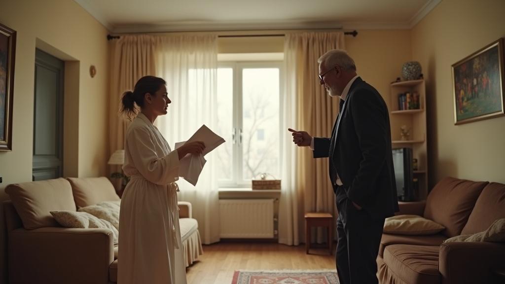 За дверью спальни слышались чужие голоса. Марина вскочила с постели, накинула халат и выбежала в гостиную. Картина, которая предстала перед ней, заставила её остолбенеть. Посреди комнаты стояла её свекровь Галина Ивановна в компании незнакомого мужчины в строгом костюме с портфелем.