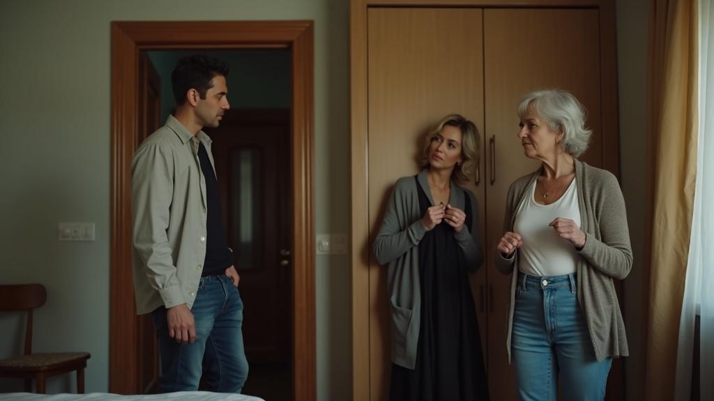 В этот момент в квартиру вошёл Сергей. Высокий, широкоплечий, с усталым лицом после рабочего дня. Он застыл в дверях спальни, оценивая ситуацию. Марина посмотрела на него с надеждой — может, хоть сегодня он станет на её сторону?