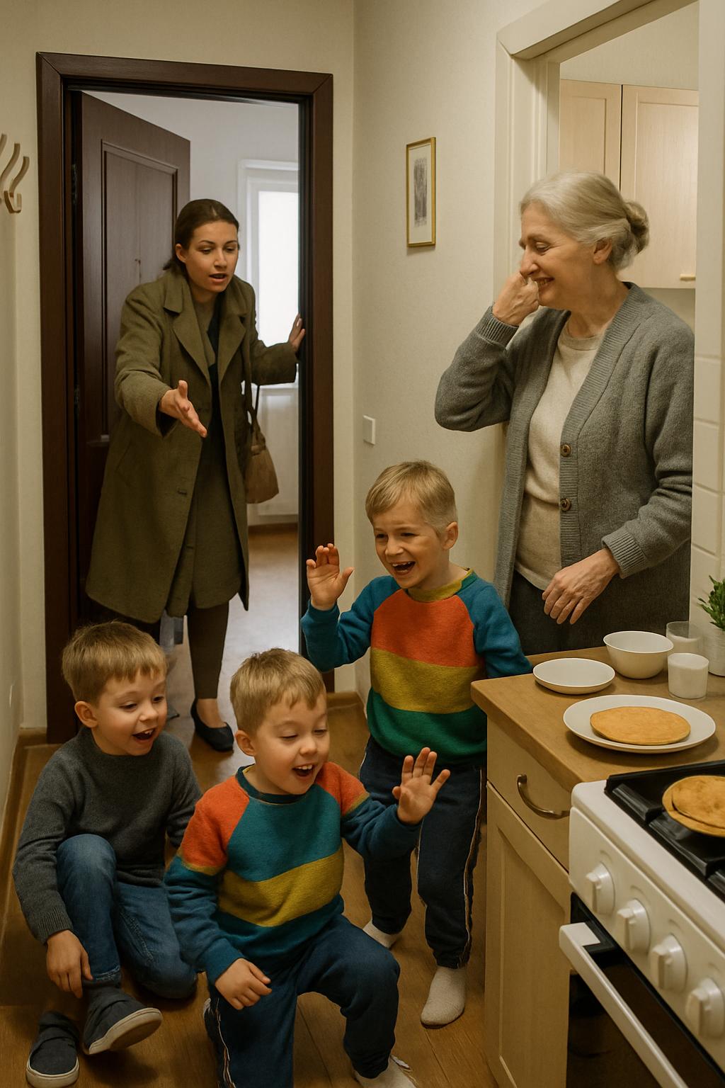 Валентина улыбнулась, глядя на внуков — семилетнего Артема и пятилетнего Дениску, которые уже скидывали кроссовки в прихожей.