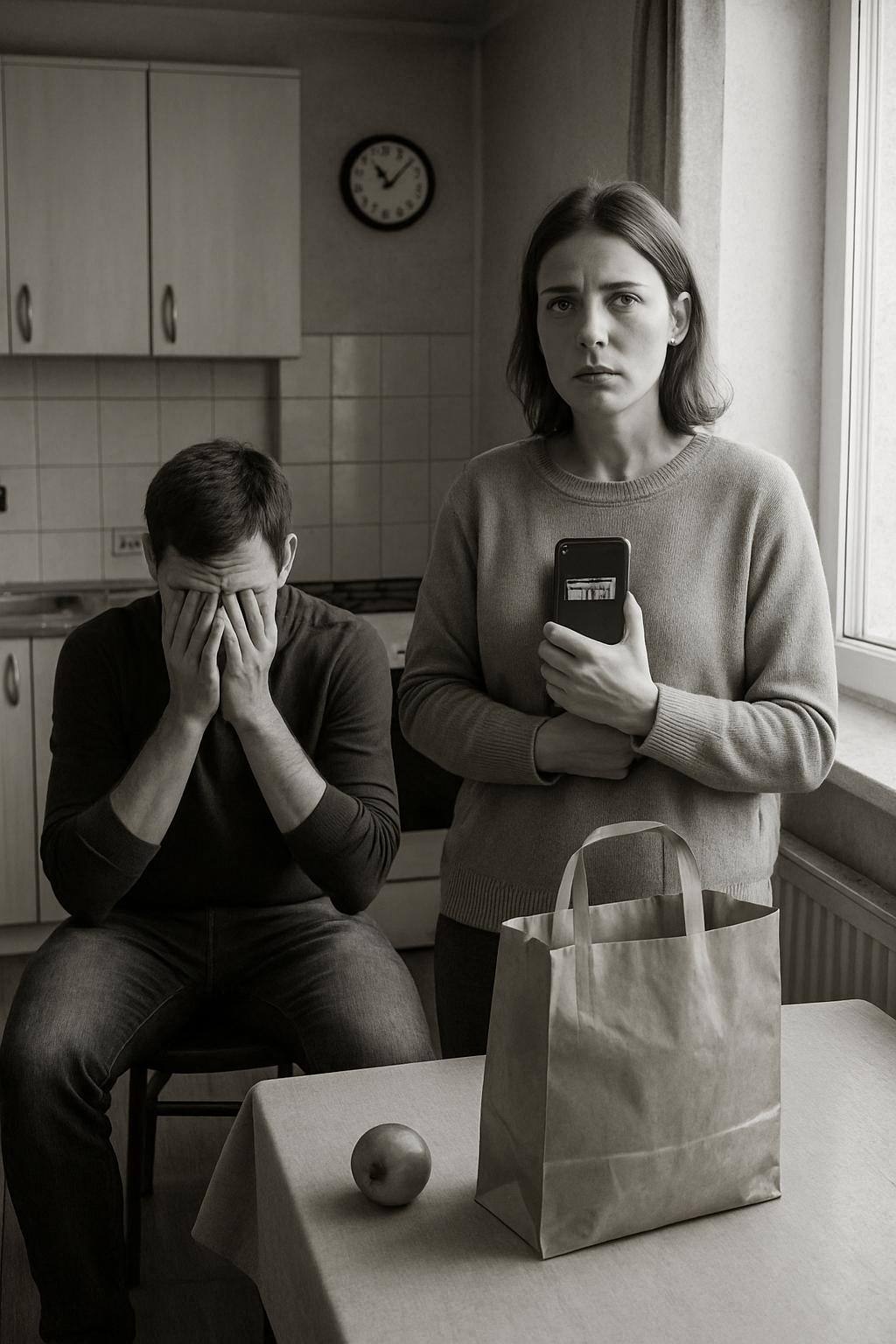 Елена стояла у окна, прижимая к груди телефон. На экране всё ещё светилась страница интернет-банка — красная строка с остатком, от которой у неё до сих пор кружилась голова. Она медленно повернулась к мужу. Глаза её были широко раскрыты, но в них не было ни злости, ни слёз — только растерянность, почти детская.