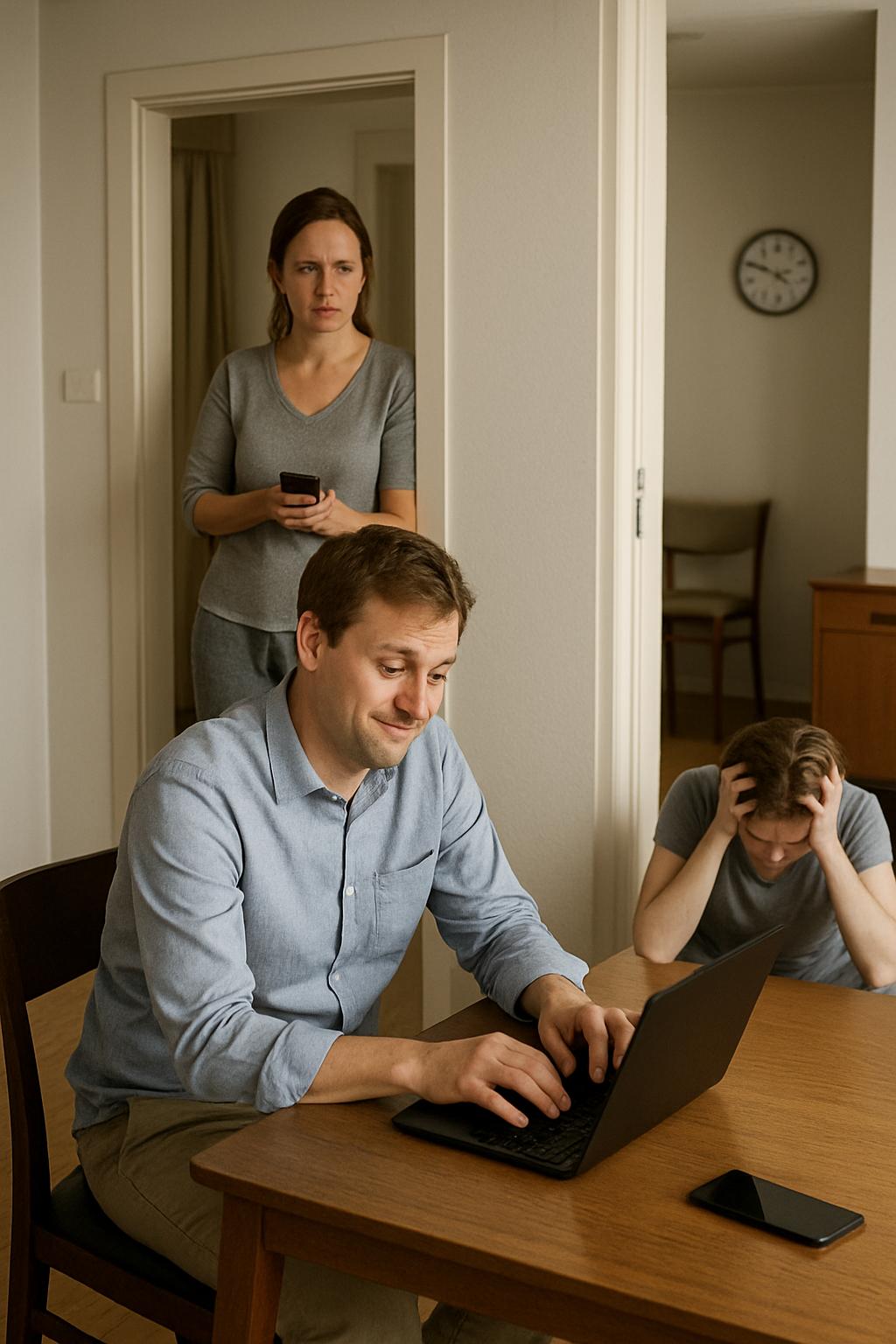 Сергей наконец оторвался от экрана и посмотрел на жену с той самой улыбкой — чуть виноватой, чуть удивлённой, будто она говорила о чём-то совсем неважном.
