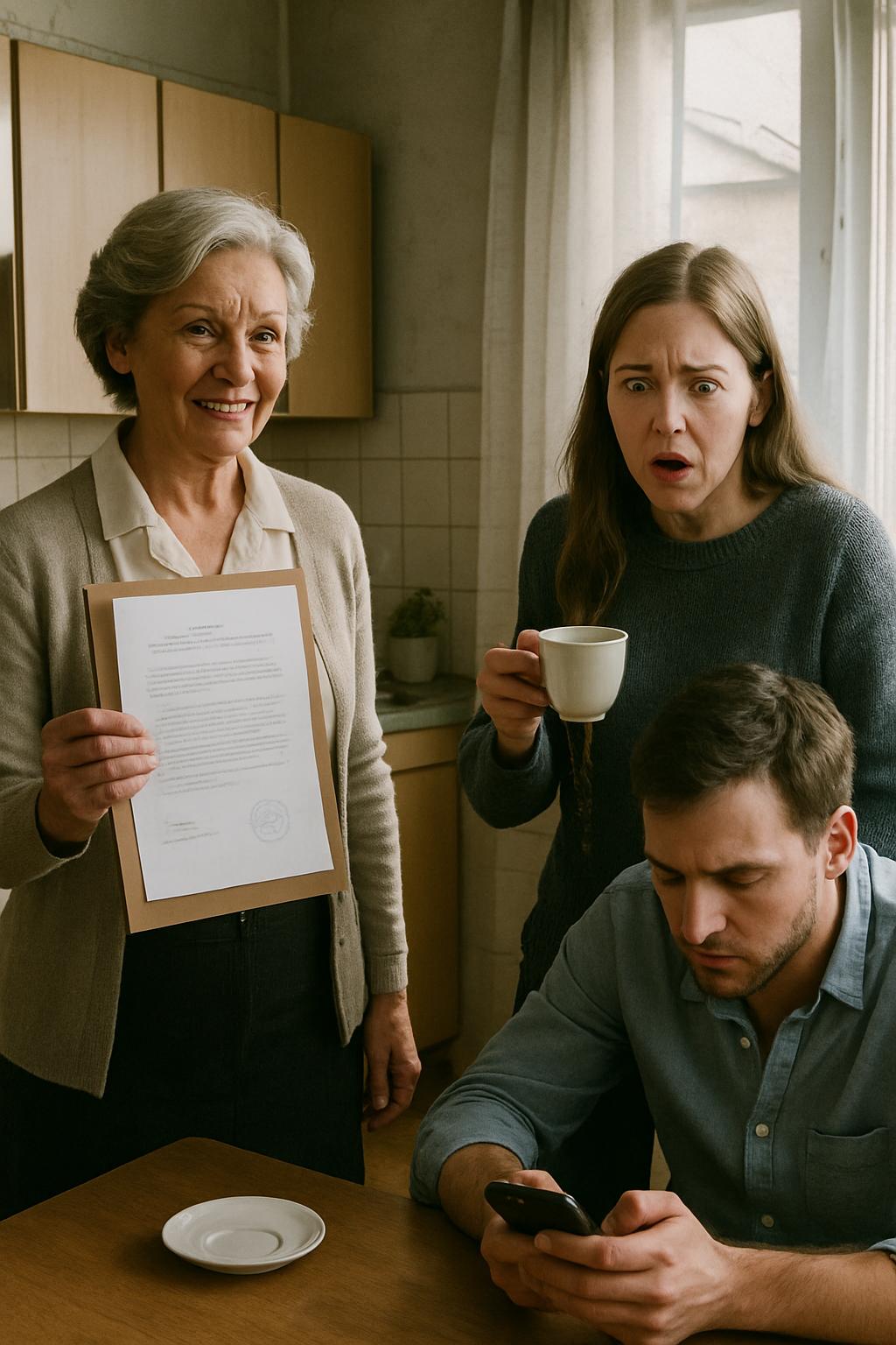Галина Петровна стояла посреди их маленькой кухни, словно полководец на поле боя. Её тщательно уложенные седые волосы блестели в утреннем свете, а в глазах плясали холодные искорки торжества. Она держала в руках документы — Татьяна узнала знакомую папку с печатями нотариуса.