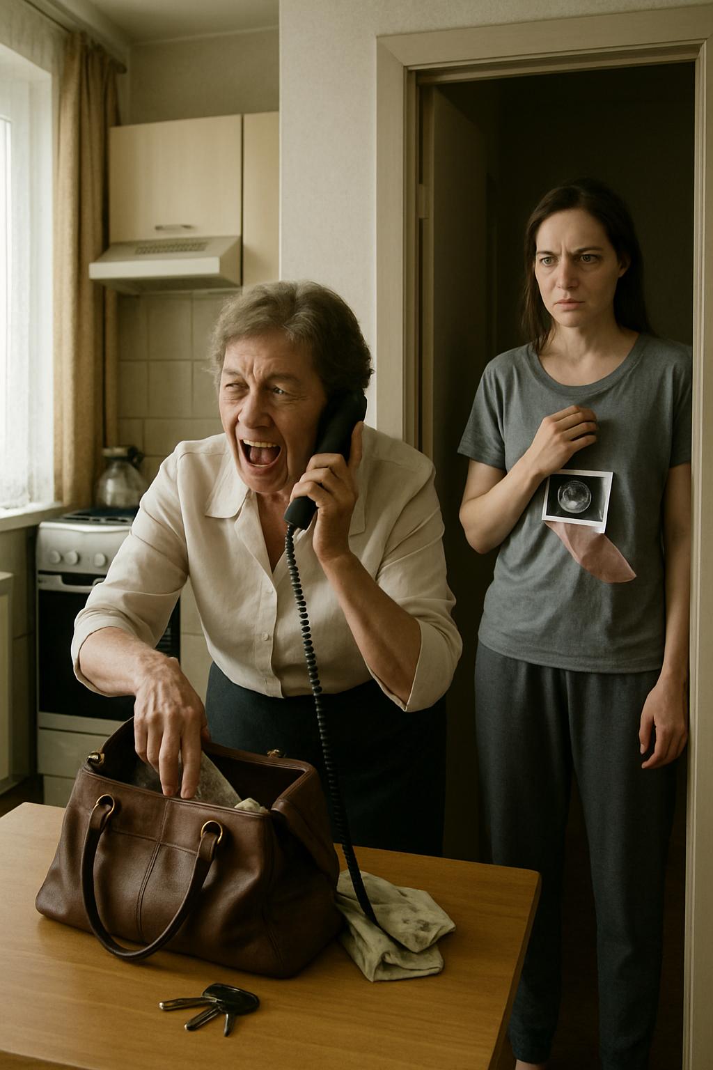 Марина прошла на кухню. Валентина Петровна сидела спиной к двери, продолжая вещать в трубку. На столе перед ней лежала раскрытая сумка Марины. Её личная сумка, которую она оставила в прихожей.