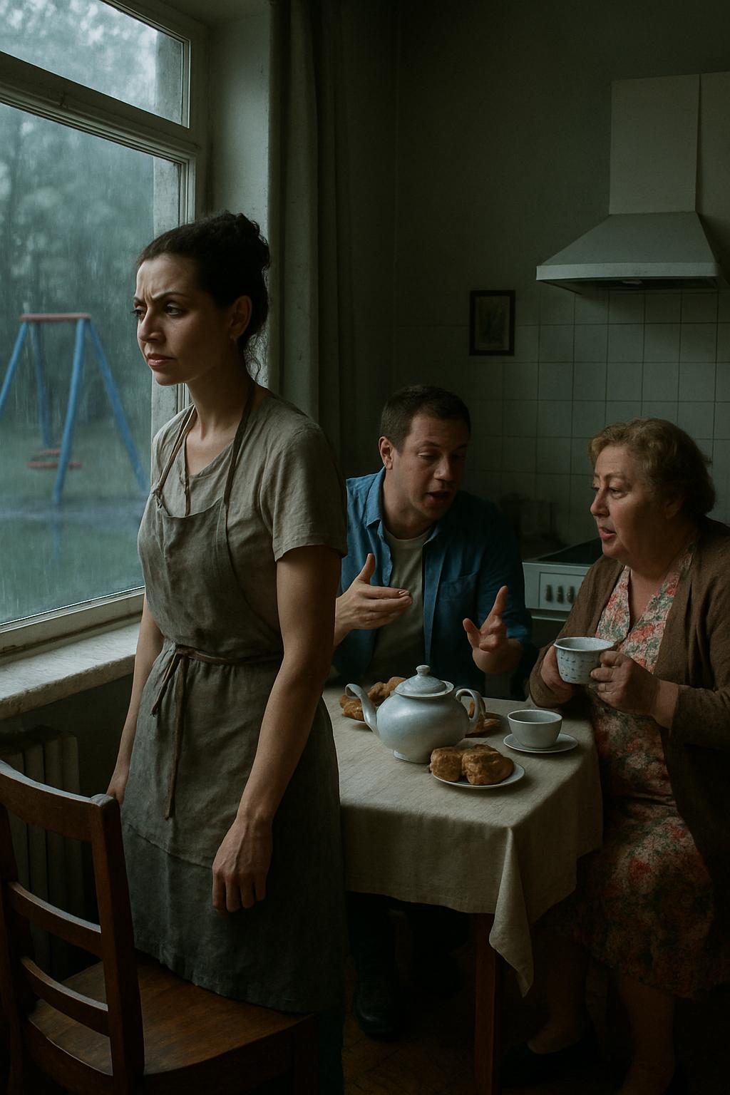 За столом, накрытым праздничной скатертью — той самой, льняной, что папа привёз из командировки в Кострому лет двадцать назад, — сидели её муж Вячеслав и его мама, Тамара Петровна. Свекровь, женщина корпулентная и властная, держала чашку чая так, словно это был скипетр. Она дула на кипяток, смешно вытягивая губы трубочкой, и между глотками продолжала свою бесконечную лекцию.